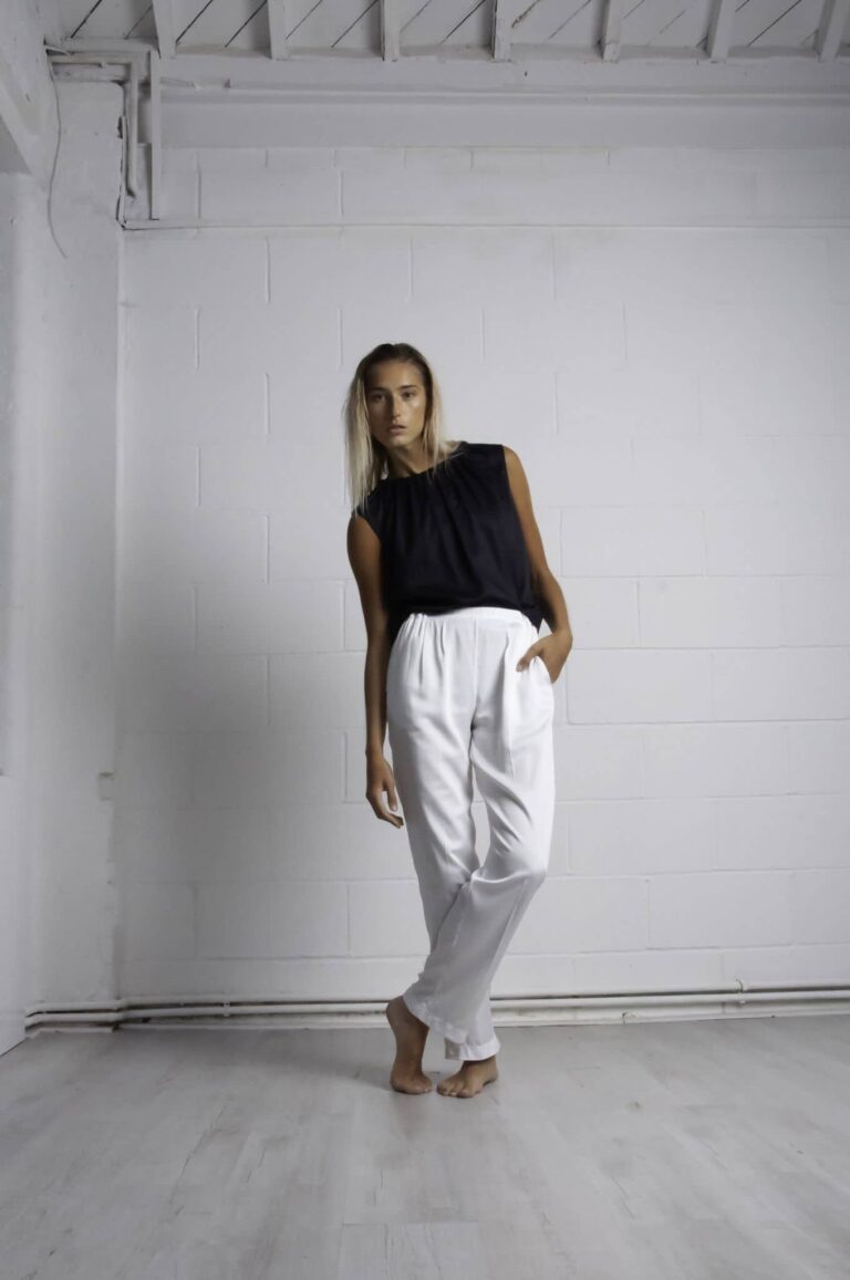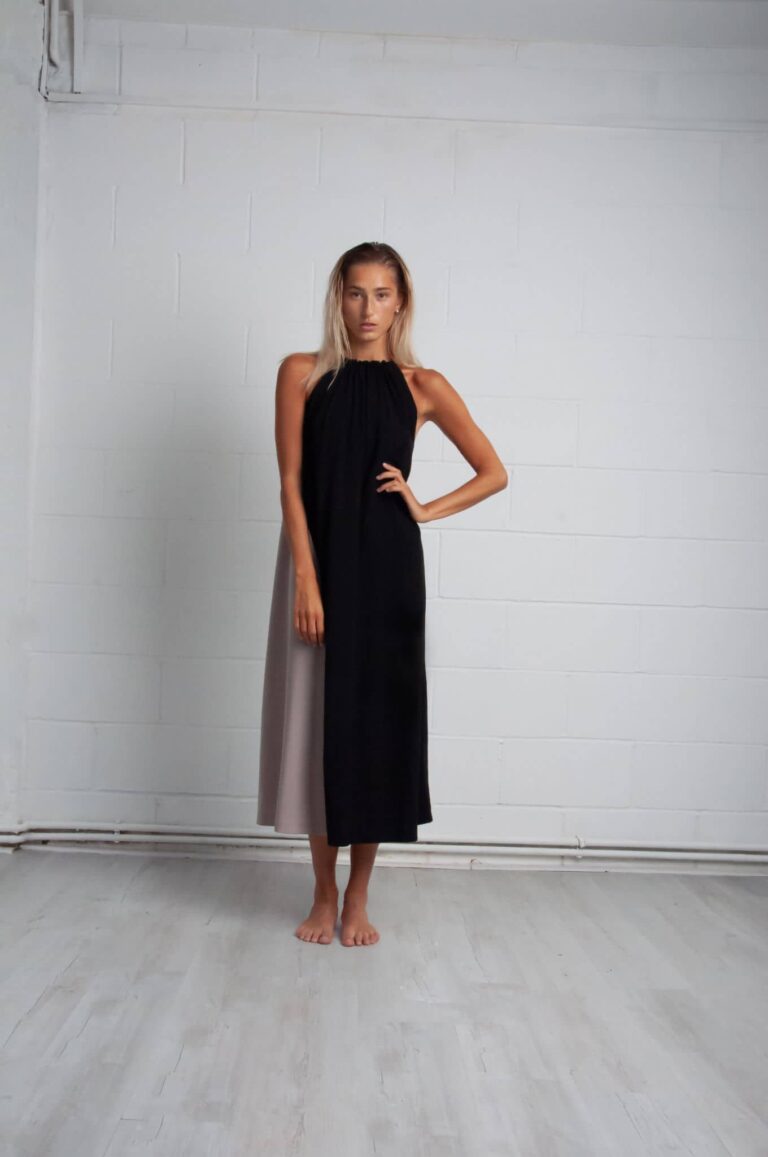 The materials used in the SS20 collection are cotton, bamboo silk, viscose, and a mix of recycled polyester. Black is the most common colour and is accompanied by white, sand and grey. All fabrics in this way are given a fresh story.