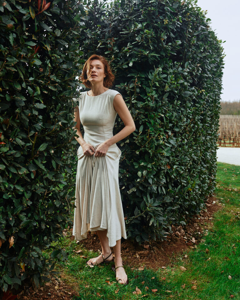 The collection was captured in the enchanting setting of Meneghetti Wine Hotel & Winery — a luxurious retreat nestled in untouched nature, where minimalist architecture meets the authenticity of the Istrian landscape. This serene, almost meditative environment amplifies the very essence of the collection.