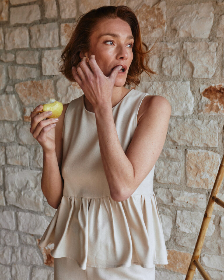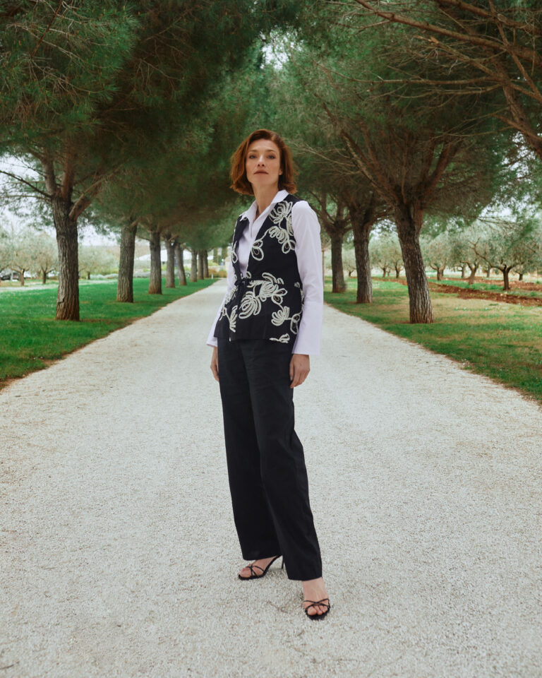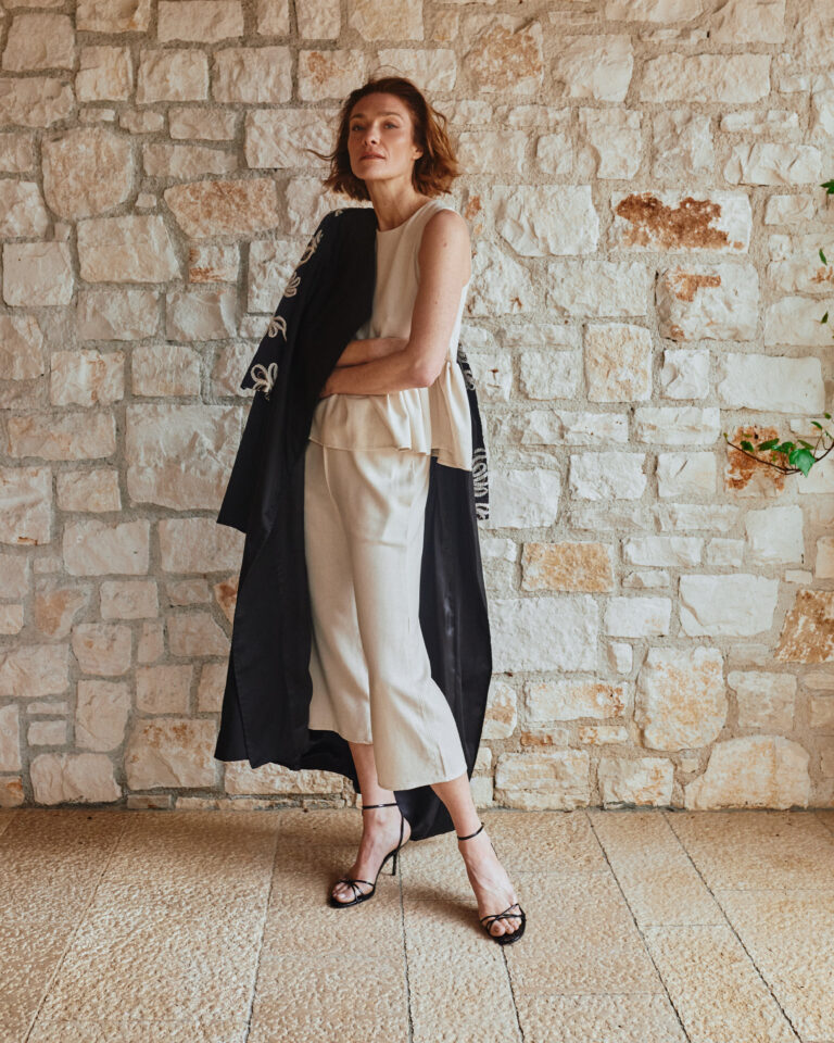 Natural materials take center stage. Linen, cotton, and viscose define the collection not only through their tactile beauty, but through their lightness and breathability. These fabrics move with the body, breathe alongside it, and create an effortless elegance that exists beyond fleeting trends.