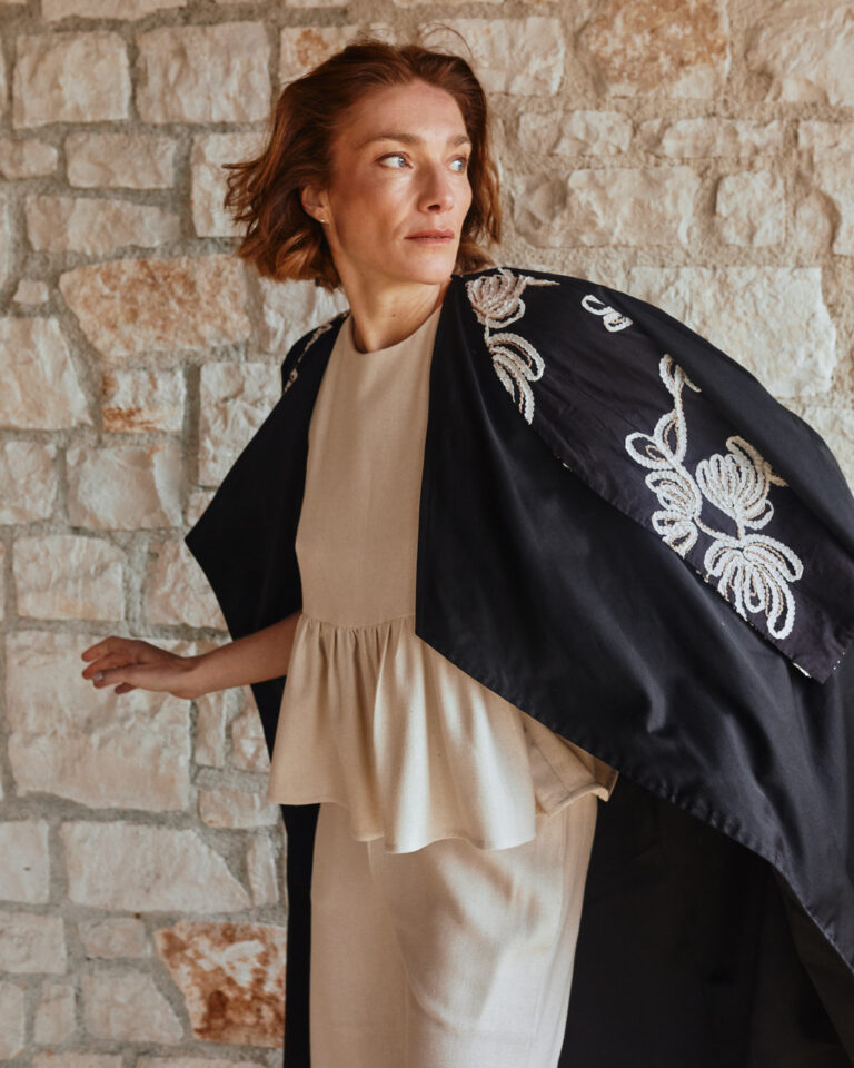 At its heart lies a quiet dialogue between past and present. Traditional cuts and silhouettes serve as a point of departure, reshaped through a modern design language that celebrates freedom of movement, femininity, and inner strength. The result is an aesthetic both tender and resolute — a reflection of the woman of today.