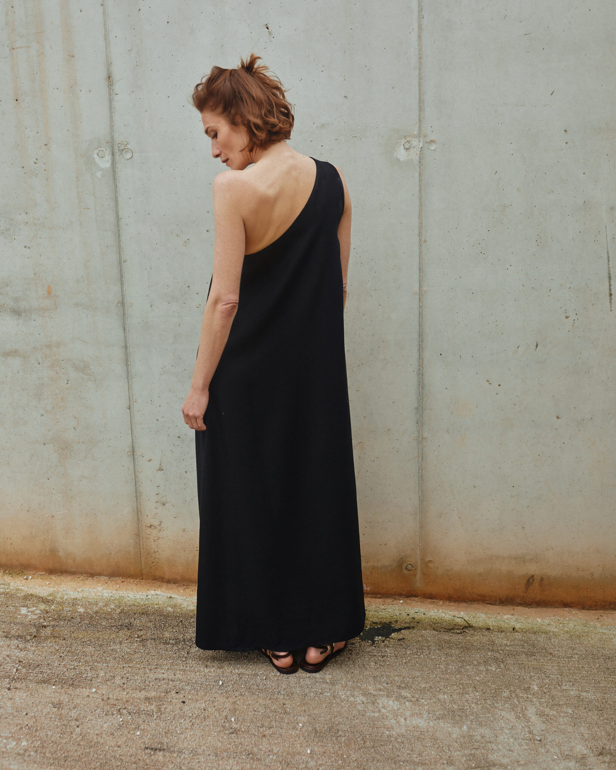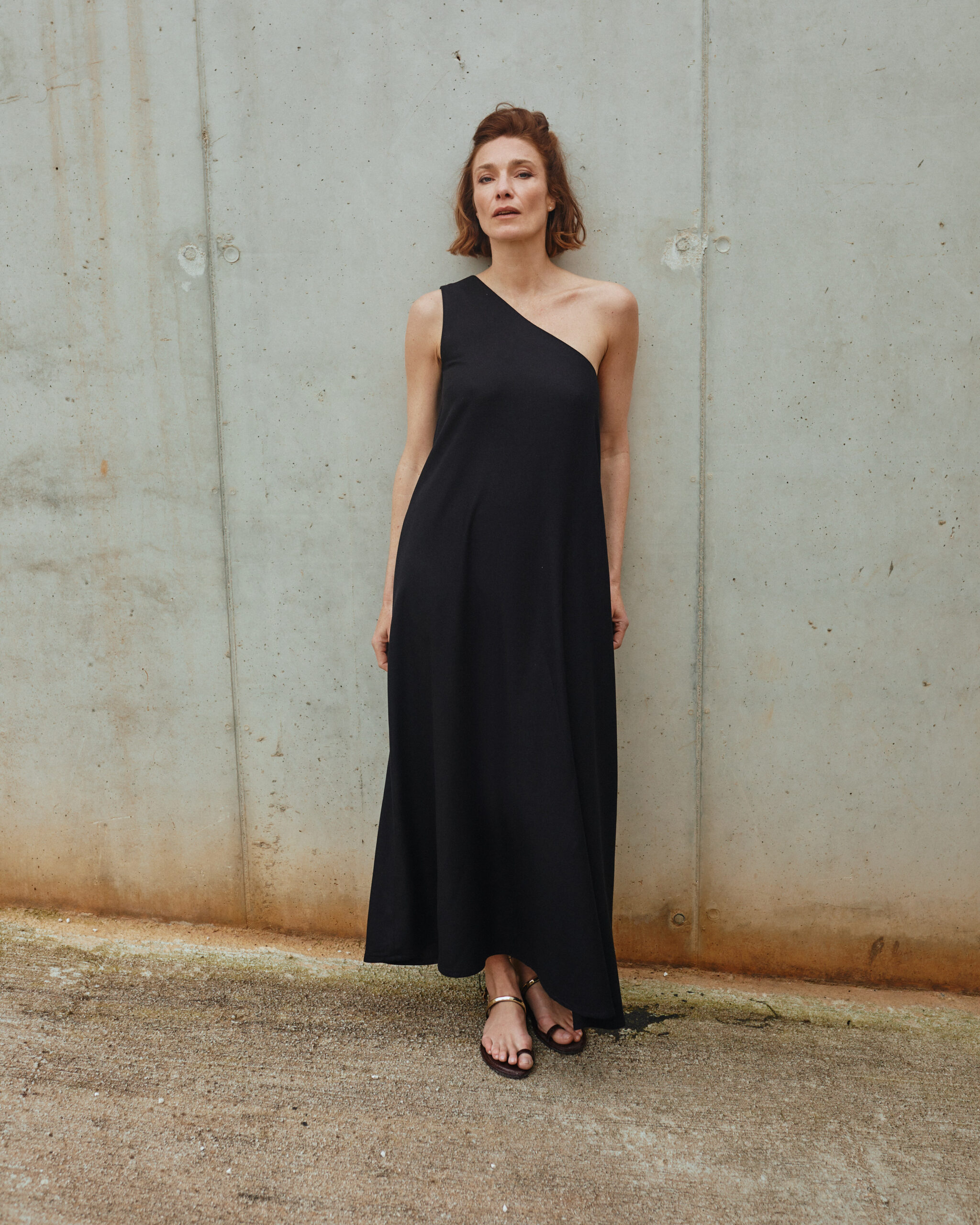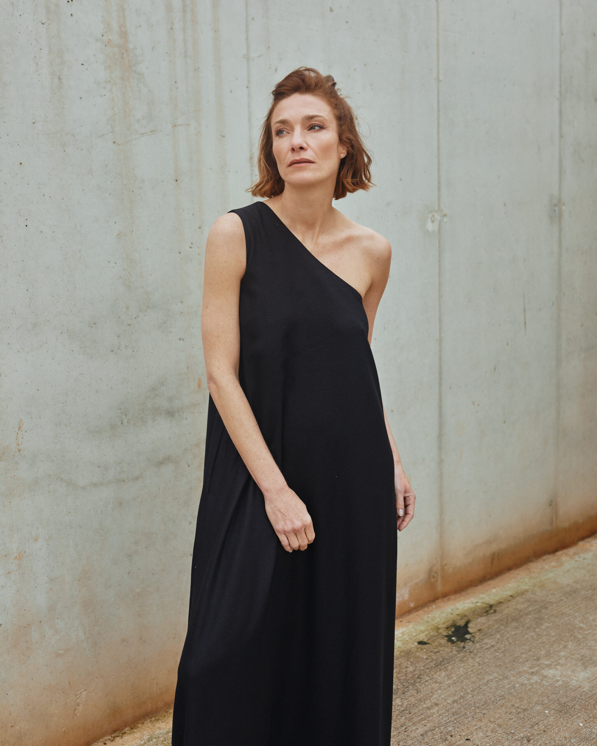 Savršena ljetna haljina, izrađena od viskoze. Haljina ima džepove u bočnom šavu. Haljina na jedno rame i A kroj.