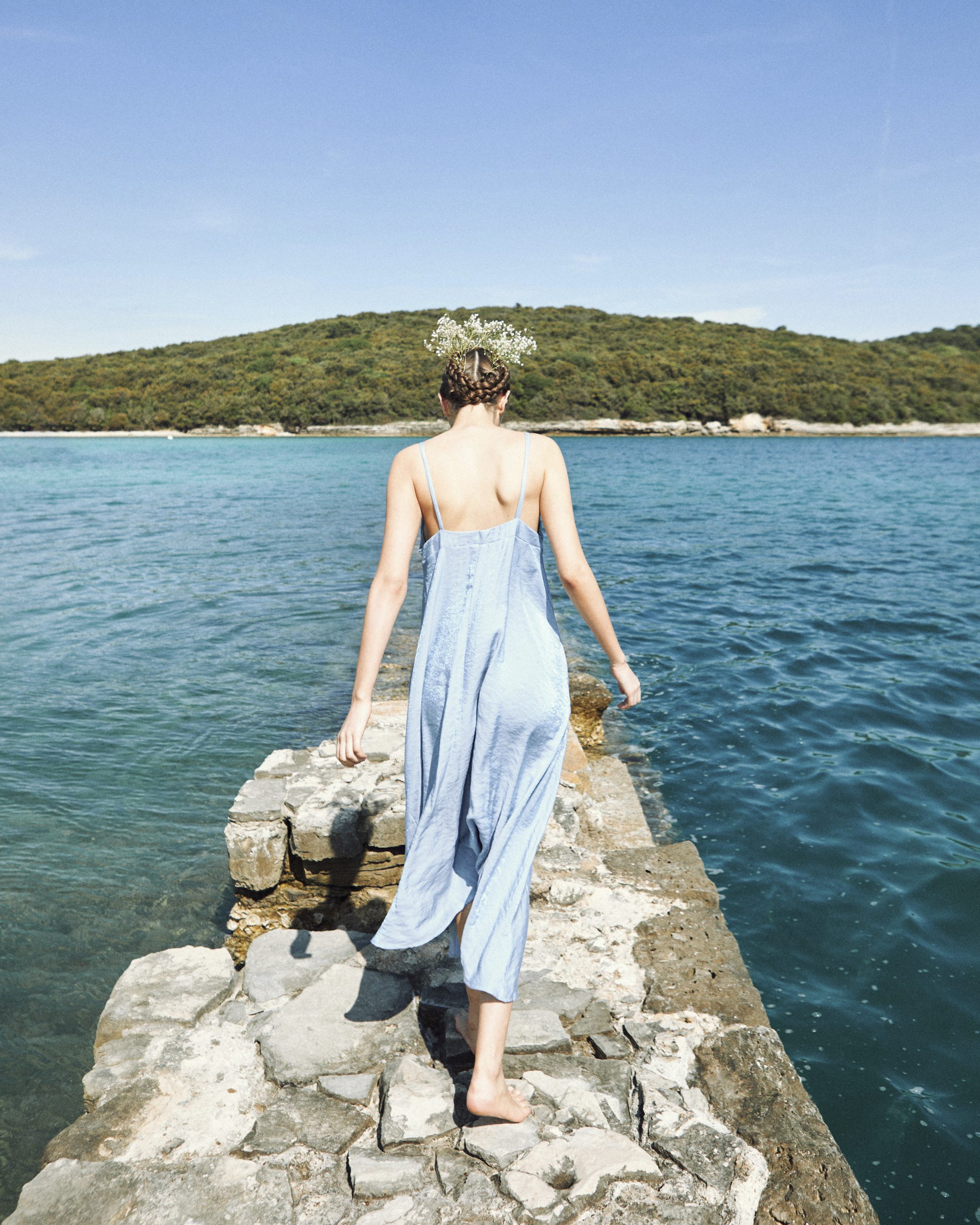 Ljetna haljina iz snova koja prekrasno pada sa svakim korakom. Plava haljina A-kroja ima laskavi V-izrez, nježne naramenice i otvorena leđa za dašak elegancije. Džepovi dodaju praktičan, ali elegantan detalj ovom laganom i prozračnom komadu, što ga čini savršenim izborom za tople dane.