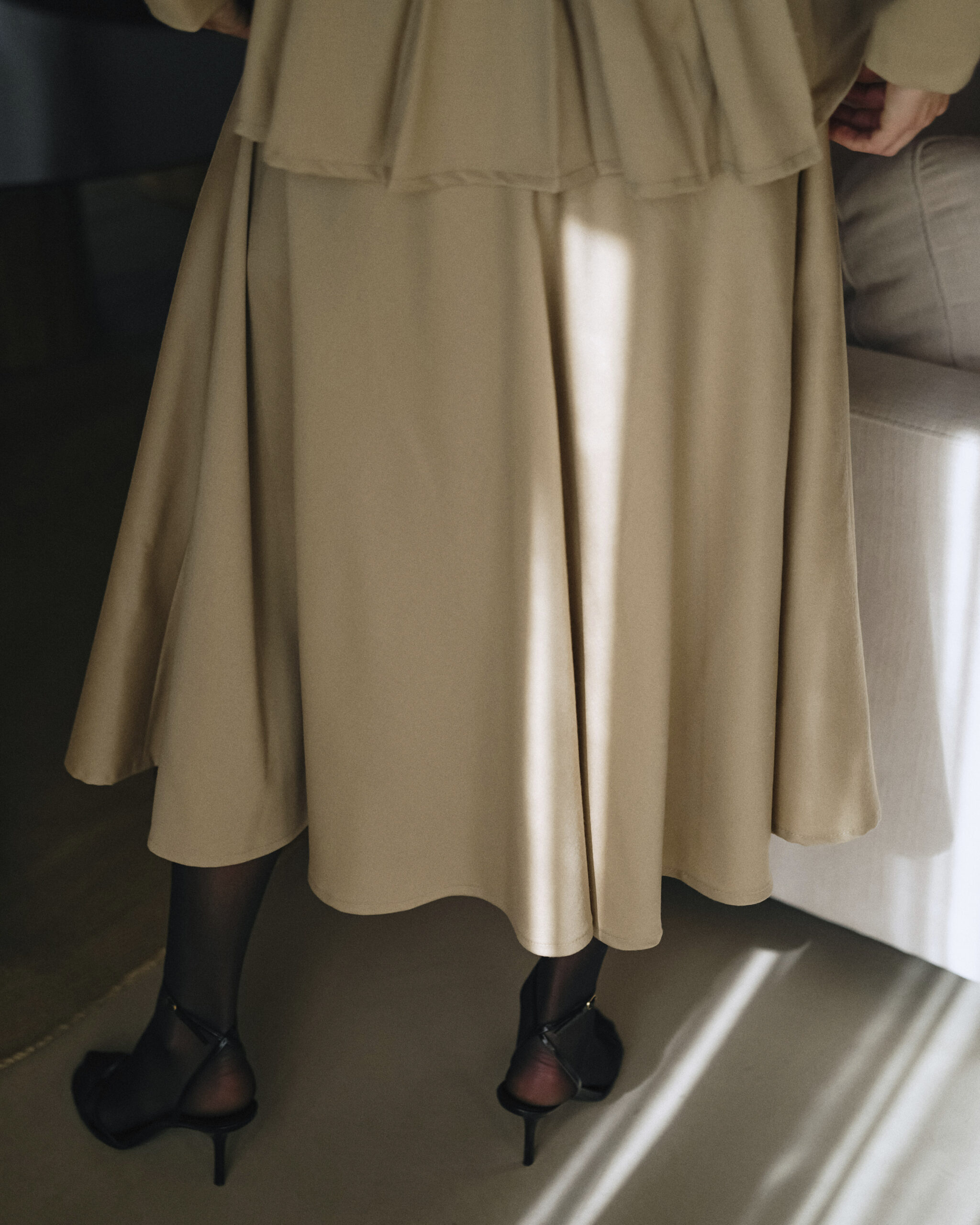 Srednje duljine, udobno sjedi u struku s laskavim, lepršavim oblikom.