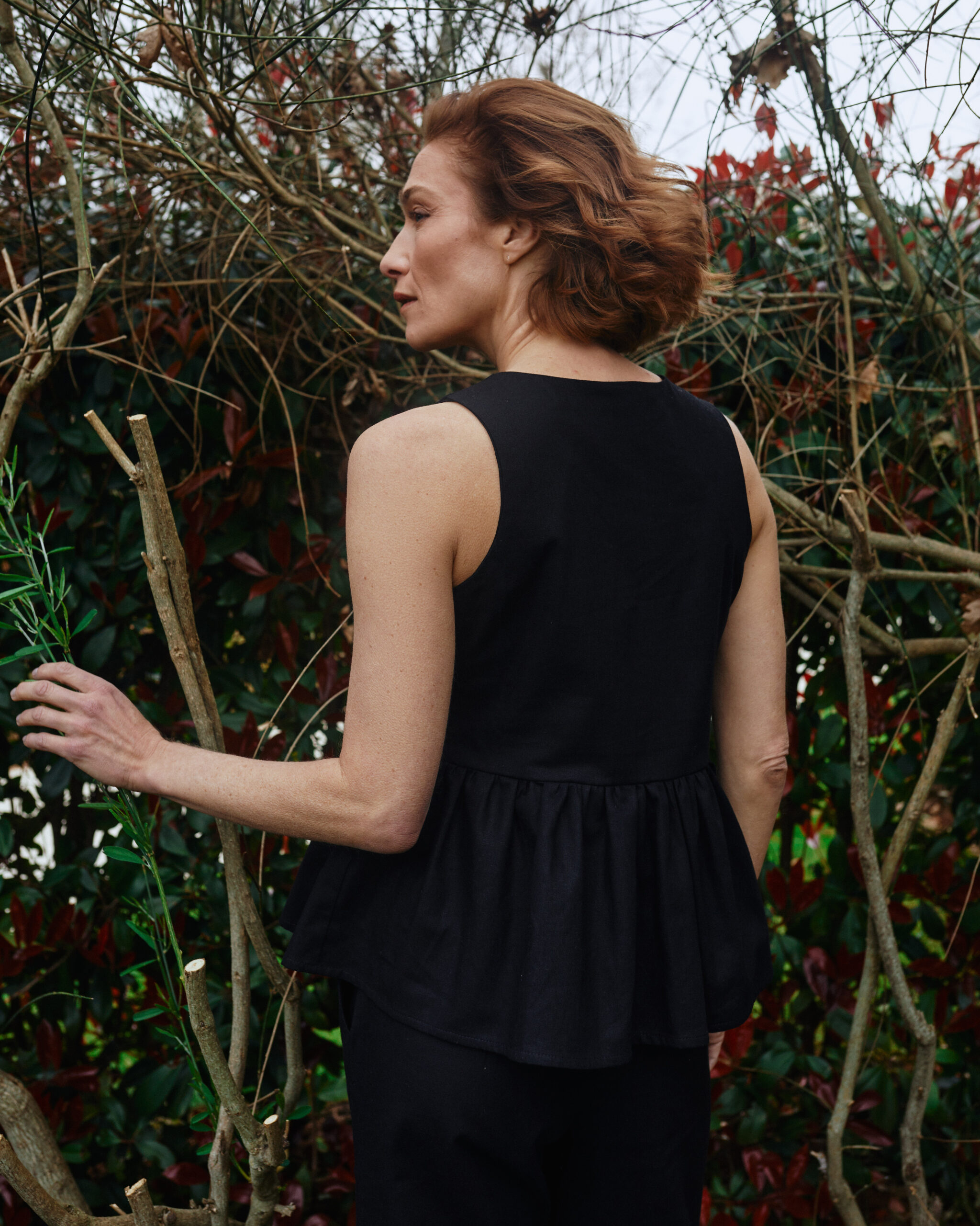 Top bez rukava, širokog kroja s mekim volanima na rubu za razigran, ženstven dodir. Lagan i lepršav – savršen za tople dane ili jednostavno slojevito oblačenje.